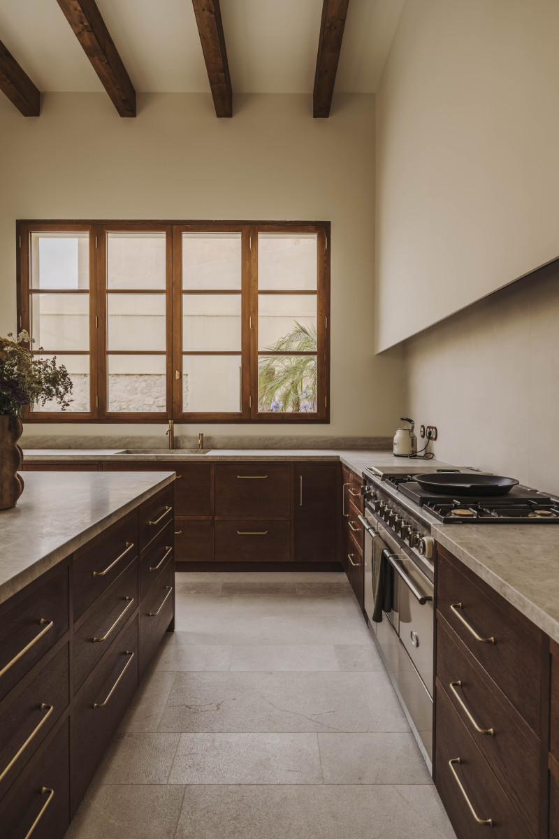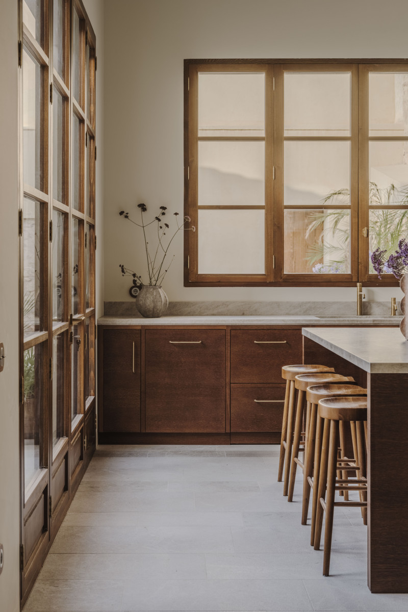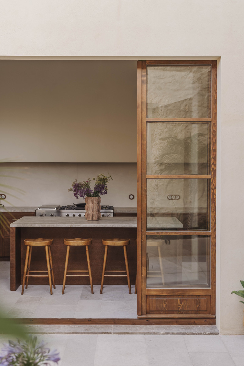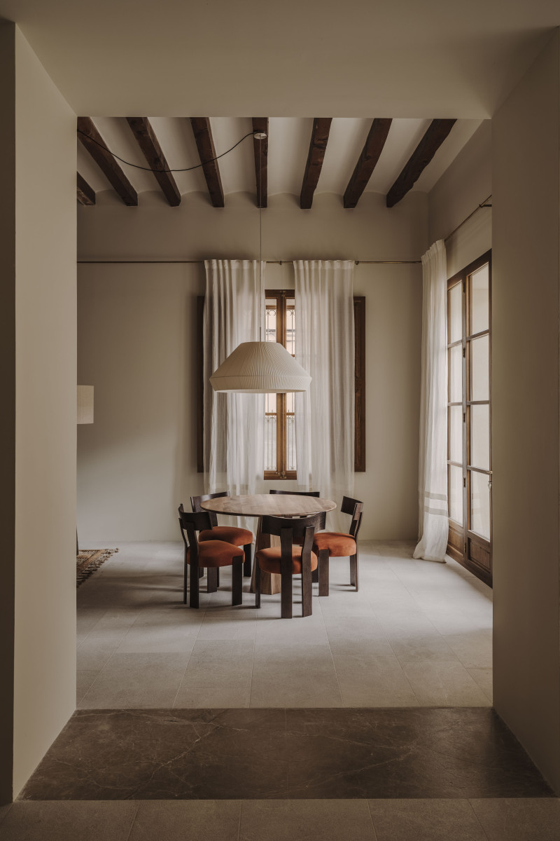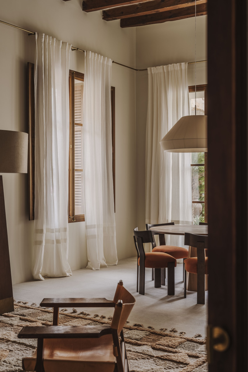 Located at the foothills of the Serra de Tramuntana, in Binissalem (Mallorca), we renovated a Mallorcan “casal” from the 18th–19th century. The dialogue and symbiosis with the surrounding landscape and architectural heritage became the backbone of this special project. Our constant pursuit of balance — to blur the lines between old and new — led us to work with local materials and craftspeople rooted in traditional know-how, while embracing the comfort and lighting standards of contemporary living.