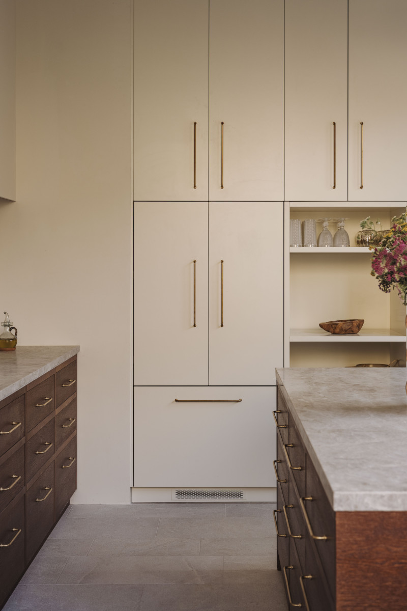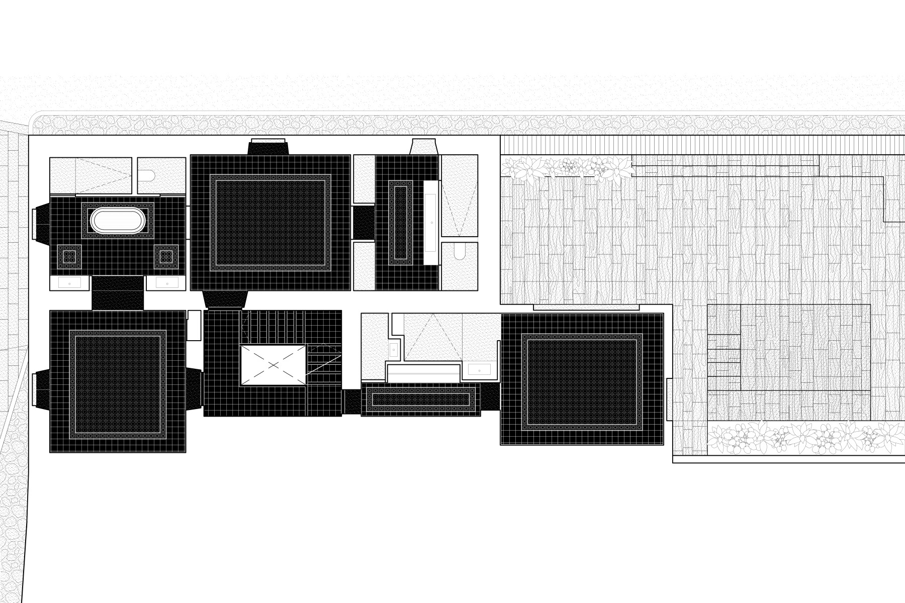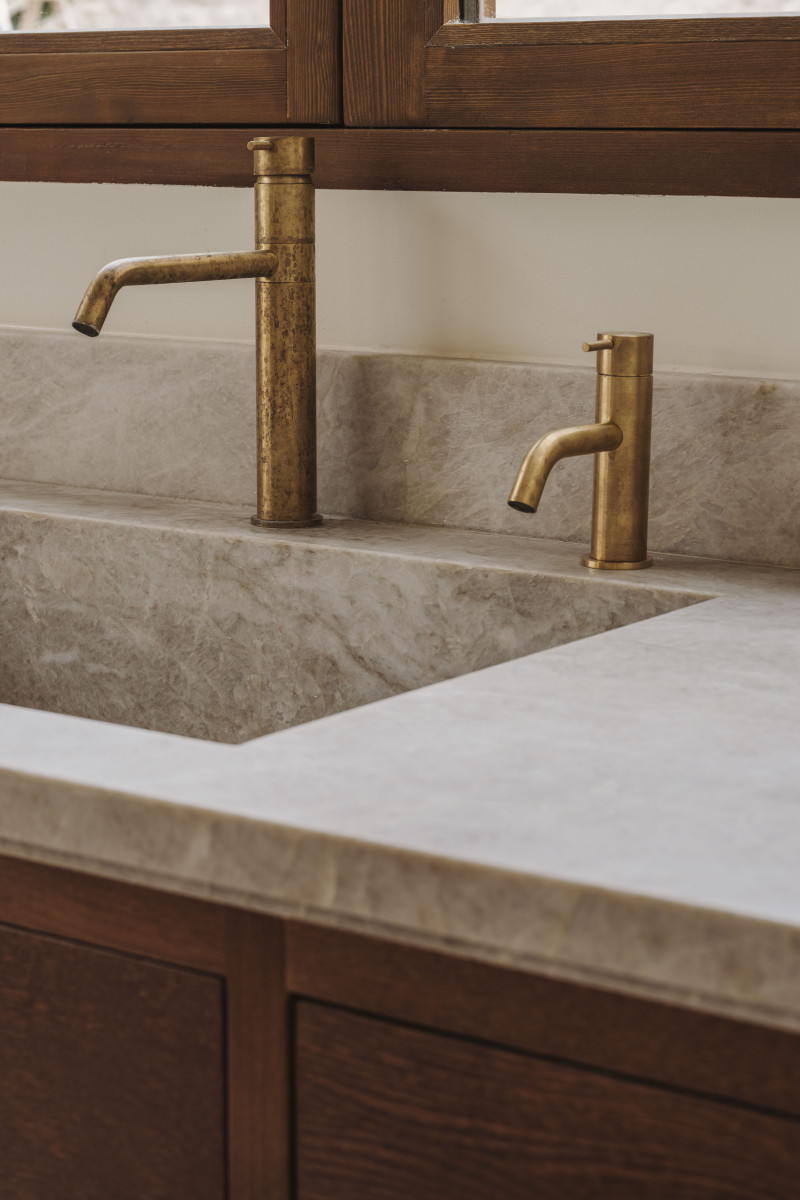 On this floor, the house shows its most refined character. Wood, encaustic tiles, stone and the junction details between them all highlight the architecture and light. With a neutral palette and the proportions of the original house, the bedroom design is defined by comfort and brightness.