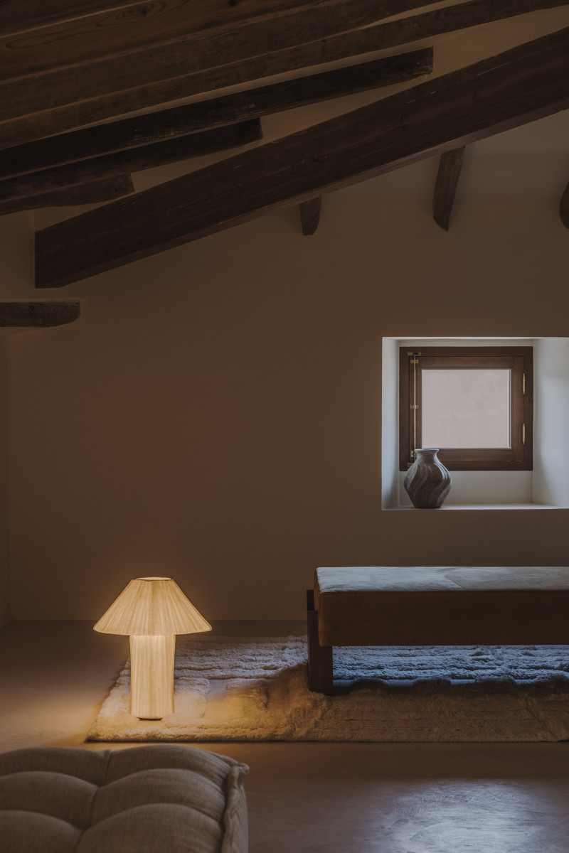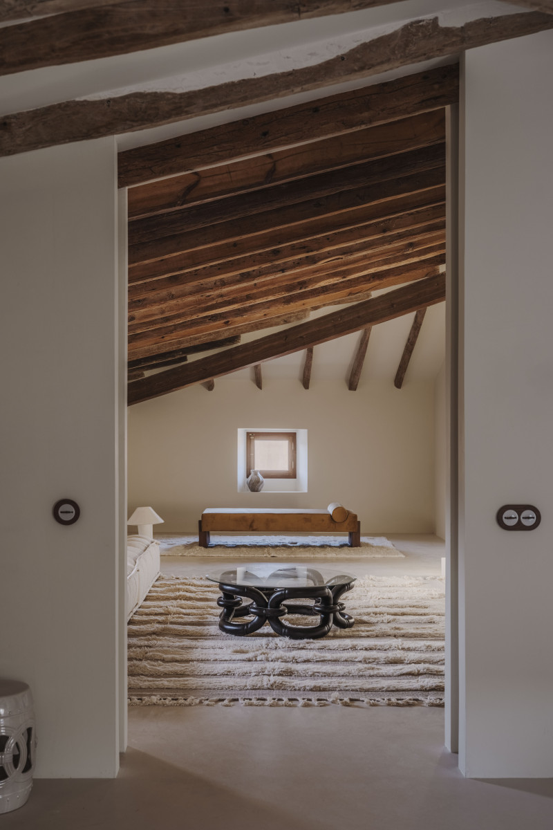 Como un paraíso terrenal, la última planta se desnuda, dejando el protagonismo a los elementos preexistentes: la madera de la cubierta y las pequeñas entradas de luz. En este espacio se busca encontrar un estado de calma absoluta. No hay elementos que destaquen por encima de la arquitectura, tan solo se busca mantener esta paz añadiendo lo mínimo para habitar, una zona de estar y lectura y la suite principal.