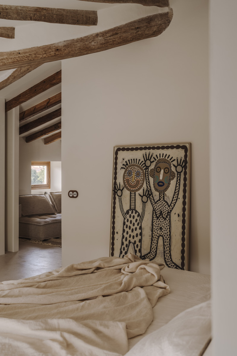 Por último, cabe destacar la presencia del mobiliario de Dusty Deco, donde se decora el espacio utilizando elementos igual de elegantes como atemporales, así como la colección del artista de Binissalem: Toni Salom, con su propuesta “Kids and Gods”, que le da un carácter único a cada uno de los rincones de la casa donde se encuentran sus obras.